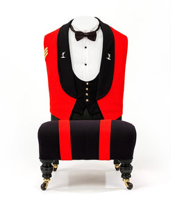 These clever folk have taken an original vintage Army Mess Dress, and tailored and wrapped the chair incorporating all elements of the uniform.