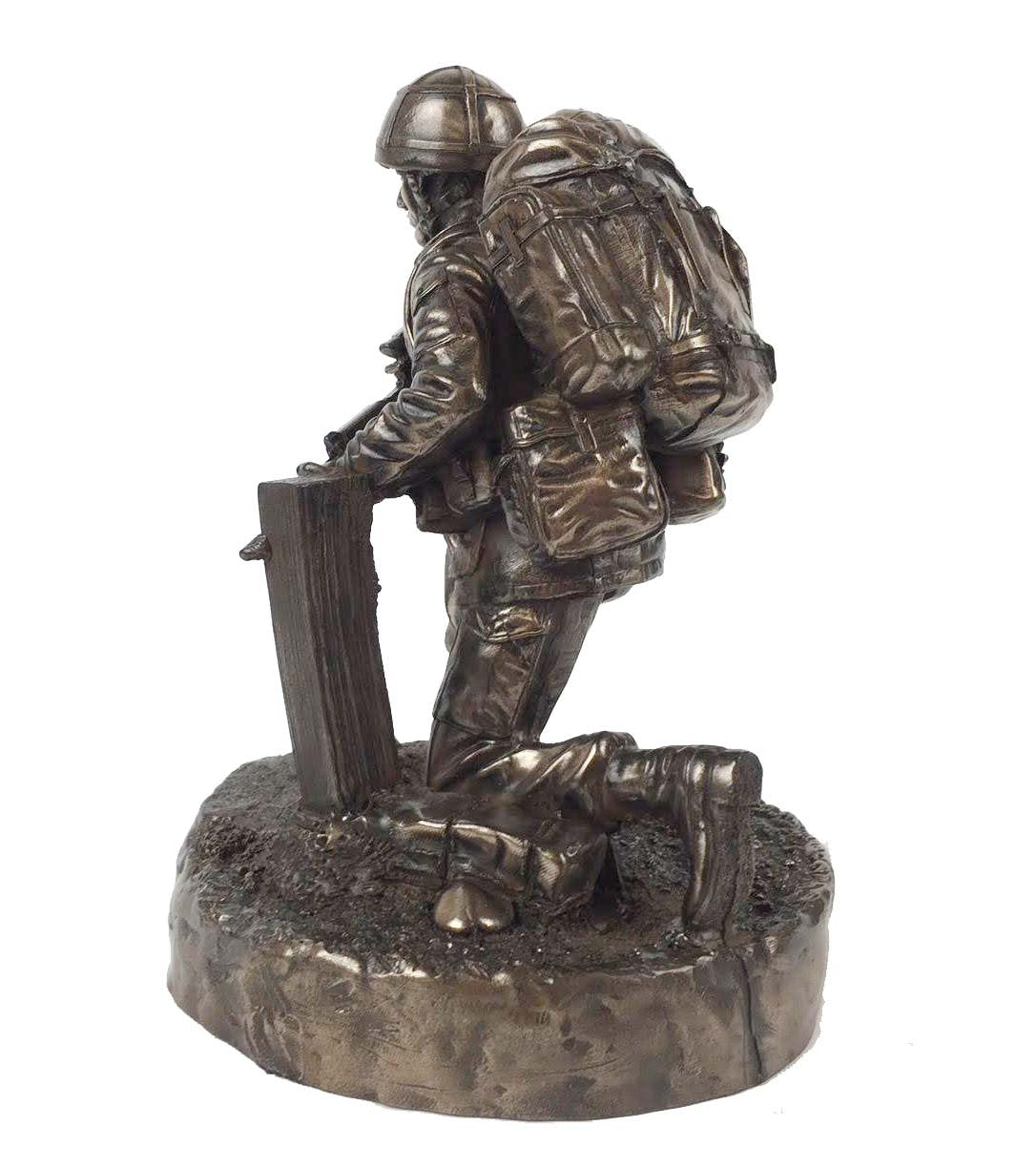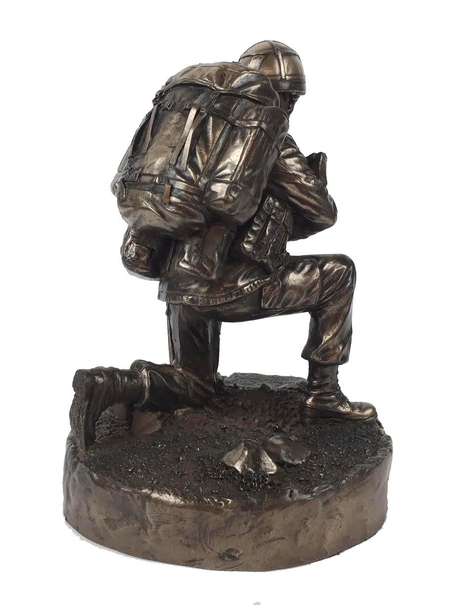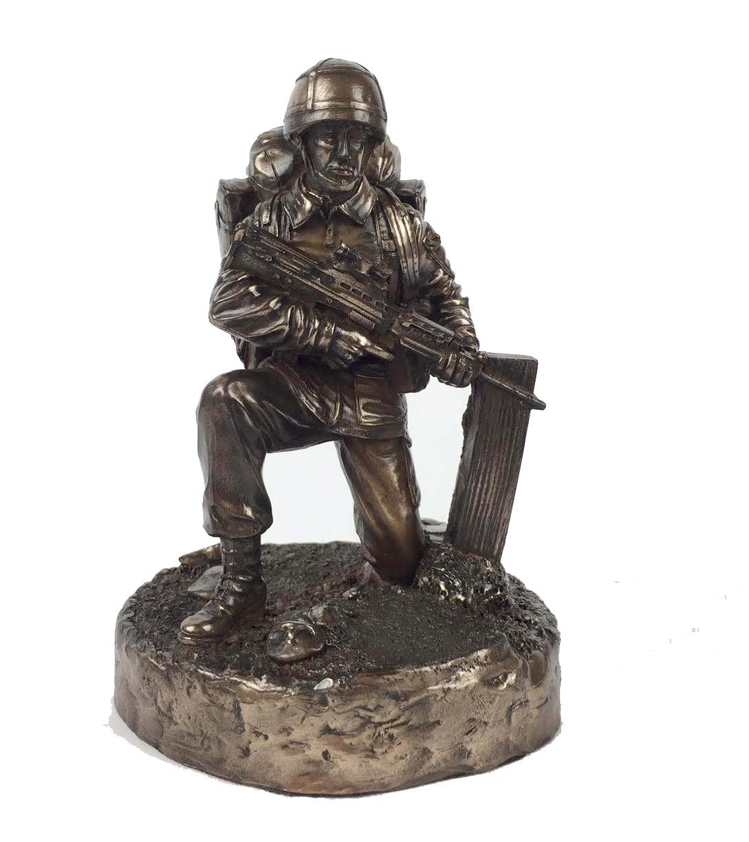 Fat Chimp is proud to present this cold cast statue of a British Soldier Kneeling in action.The Soldier is seen kneeling in action and carries his SA80 Rifle as well as a full backpack.