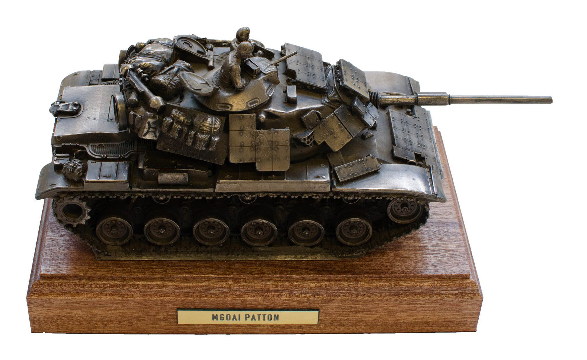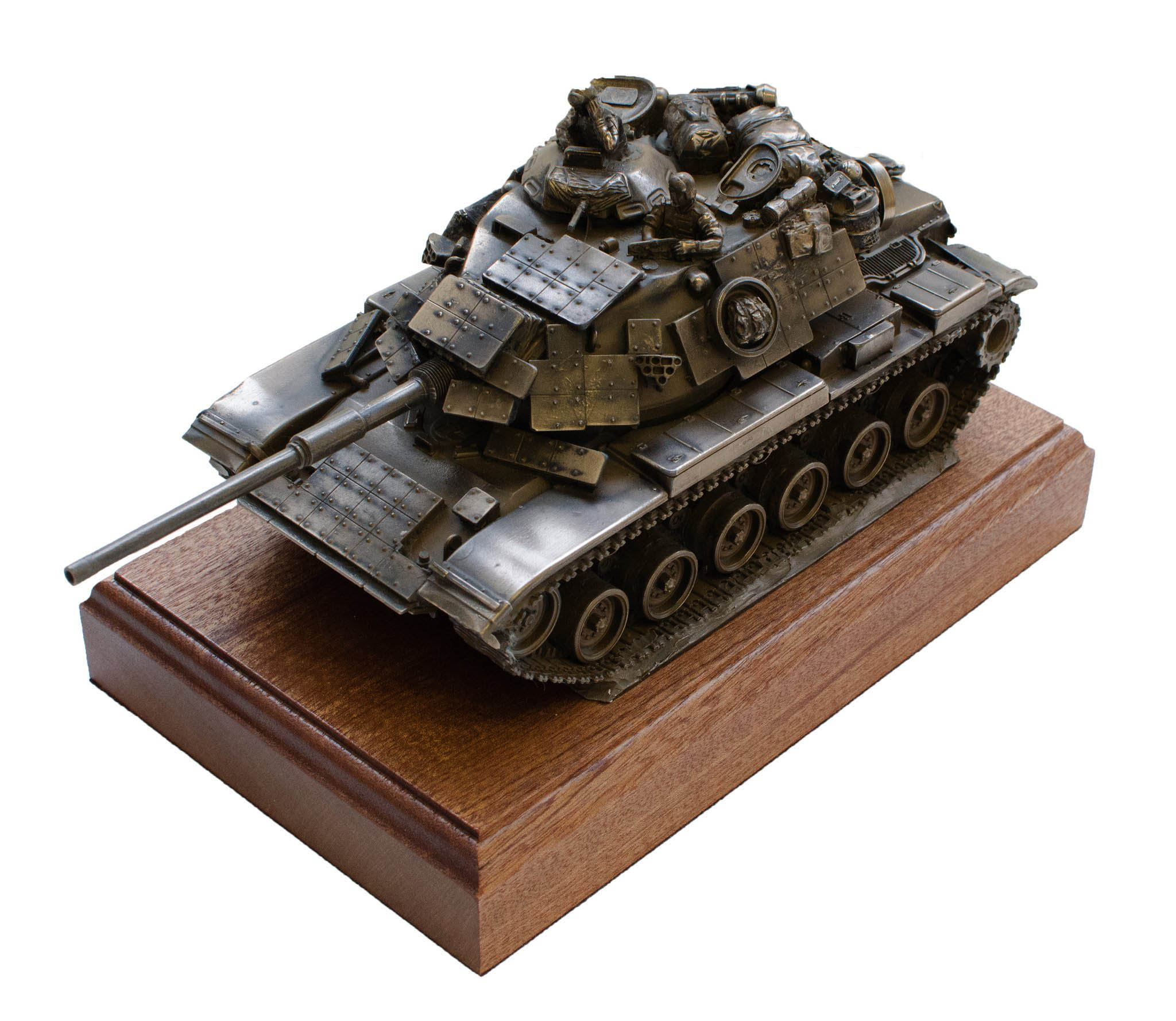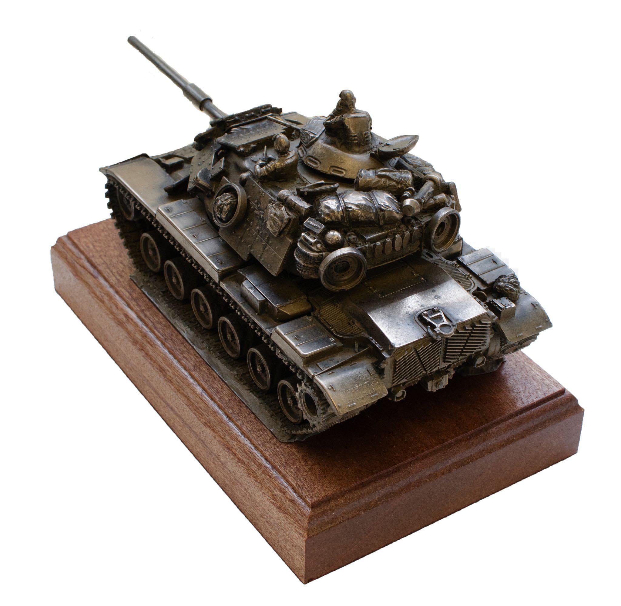 Fat Chimp is proud to present this cold cast statue of the M60A1 Patton Tank mounted on a block of solid Mahogany. (Other woods available upon request.)